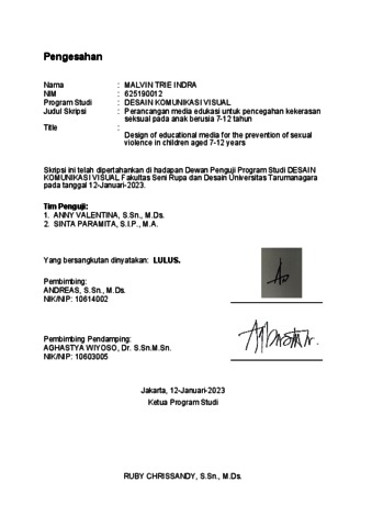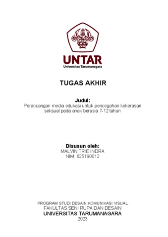Indra, Malvin Trie (2023) Perencanaan media edukasi komik untuk pencegahan kekerasan seksual pada anak berusia 7-12 tahun (DKV - 2981). Skripsi thesis, Universitas Tarumanagara.