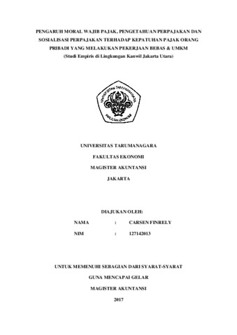 Kata Kunci: Moral Wajib Pajak, Pengetahuan Perpajakan, Sosialisasi Perpajakan,
