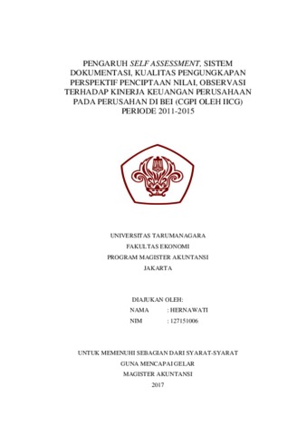 Hernawati, Hernawati (2017) PENGARUH SELF ASSESSMENT, SISTEM DOKUMENTASI, KUALITAS PENGUNGKAPAN PERSPEKTIF PENCIPTAAN NILAI, OBSERVASI TERHADAP KINERJA KEUANGAN PERUSAHAAN PADA PERUSAHAN DI BEI (CGPI OLEH IICG) PERIODE 2011-2015. Masters thesis, UNIVERSITAS TARUMANAGARA.