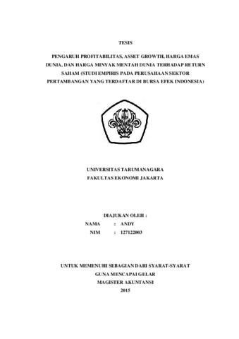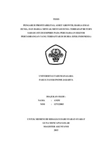 Andy, Andy (2015) PENGARUH PROFITABILITAS, ASSET GROWTH, HARGA EMAS DUNIA, DAN HARGA MINYAK MENTAH DUNIA TERHADAP RETURN SAHAM (STUDI EMPIRIS PADA PERUSAHAAN SEKTOR PERTAMBANGAN YANG TERDAFTAR DI BURSA EFEK INDONESIA). Masters thesis, UNIVERSITAS TARUMANAGARA.