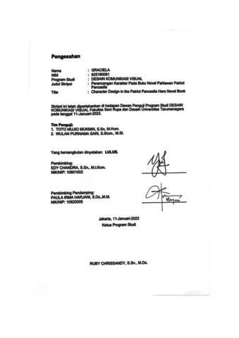 Graciela, Graciela (2023) Perancangan karakter pada buku novel pahlawan patriot Pancasila (DKV - 2974). Skripsi thesis, Universitas Tarumanagara.