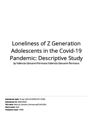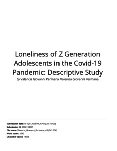 Loneliness of Z Generation Adolescents in the Covid-19 Pandemic_ Descriptive Study.pdf Download (1MB) | Preview |