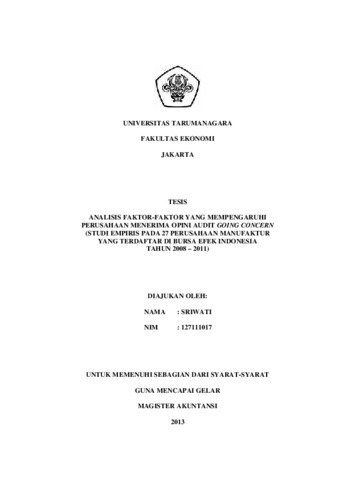 Sriwati, Sriwati (2013) ANALISIS FAKTOR-FAKTOR YANG MEMPENGARUHI PERUSAHAAN MENERIMA OPINI AUDIT GOING CONCERN (STUDI EMPIRIS PADA 27 PERUSAHAAN MANUFAKTUR YANG TERDAFTAR DI BURSA EFEK INDONESIA TAHUN 2008 – 2011). Masters thesis, UNIVERSITAS TARUMANAGARA.