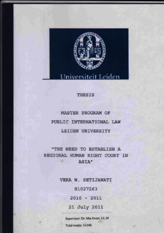 Vera W. Setijawati, Penulis The Need To Establish A Regional Human Right Court In ASIA. The Need To Establish A Regional Human Right Court In ASIA.