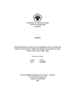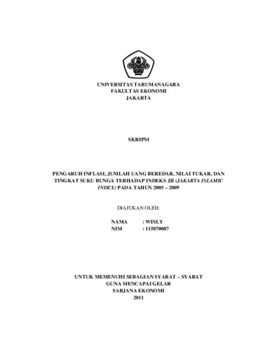 Wisly, Wisly (2011) PENGARUH INFLASI, JUMLAH UANG BEREDAR, NILAI TUKAR, DAN TINGKAT SUKU BUNGA TERHADAP INDEKS JII (JAKARTA ISLAMIC INDEX) PADA TAHUN 2005 – 2009. Skripsi thesis, UNIVERSITAS TARUMANAGARA.