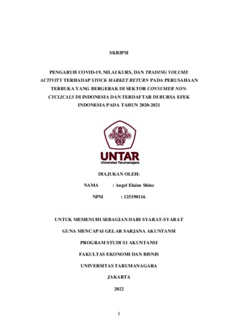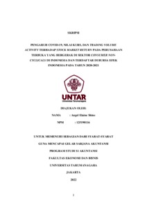 Elaine, Angel (2022) PENGARUH COVID-19, NILAI KURS, DAN TRADING VOLUME ACTIVITY TERHADAP STOCK MARKET RETURN PADA PERUSAHAAN TERBUKA YANG BERGERAK DI SEKTOR CONSUMER NON-CYCLICALS DI INDONESIA DAN TERDAFTAR DI BURSA EFEK INDONESIA PADA TAHUN 2020-2021. Skripsi thesis, Universitas Tarumanagara.