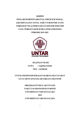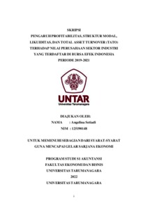Setiadi, Angelina (2022) PENGARUH PROFITABILITAS, STRUKTUR MODAL, LIKUIDITAS, DAN TOTAL ASSET TURNOVER (TATO) TERHADAP NILAI PERUSAHAAN SEKTOR INDUSTRI YANG TERDAFTAR DI BURSA EFEK INDONESIA PERIODE 2019-2021. Skripsi thesis, Universitas Tarumanagara.