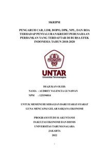 Valencia, Audrey (2022) PENGARUH CAR, LDR, BOPO, DPK, NPL, DAN ROA TERHADAP PENYALURAN KREDIT PERUSAHAAN PERBANKAN YANG TERDAFTAR DI BURSA EFEK INDONESIA TAHUN 2018-2020. Skripsi thesis, Universitas Tarumanagara.