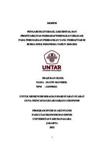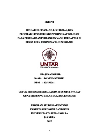 Maverik, Davin (2022) PENGARUH LEVERAGE, LIKUIDITAS, DAN PROFITABILITAS TERHADAP PERINGKAT OBLIGASI PADA PERUSAHAAN PERBANKAN YANG TERDAFTAR DI BURSA EFEK INDONESIA TAHUN 2018-2021. Skripsi thesis, Universitas Tarumanagara.