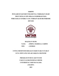 Marsella, Efrina (2023) PENGARUH FAKTOR FUNDAMENTAL TERHADAP SHARE PRICE DENGAN EPS SEBAGAI MODERASI PADA PERUSAHAAN ENERGI YANG TERDAFTAR DI BEI PERIODE 2019-2021. Skripsi thesis, Universitas Tarumanagara.