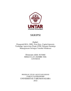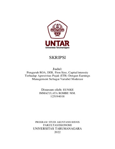 Immaculata, Eunike (2022) Pengaruh ROA, DER, Firm Size, Capital Intensity Terhadap Agresivitas Pajak (ETR) Dengan Earnings Management Sebagai Variabel Moderasi. Skripsi thesis, Universitas Tarumanagara.