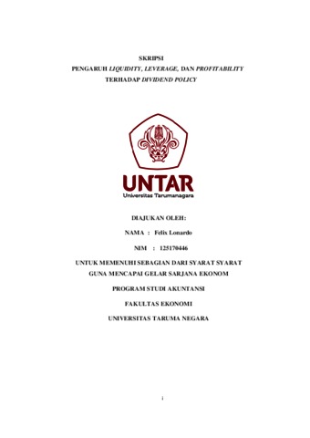 Lonardo, Felix (2022) PENGARUH LIQUIDITY, LEVERAGE, DAN PROFITABILITY TERHADAP DIVIDEND POLICY. Skripsi thesis, Universitas Tarumanagara.