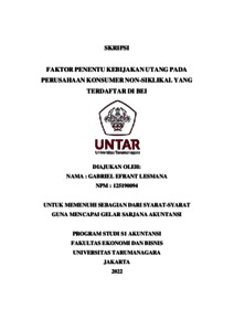 Efrant, Gabriel (2022) FAKTOR PENENTU KEBIJAKAN UTANG PADA PERUSAHAAN KONSUMER NON-SIKLIKAL YANG TERDAFTAR DI BEI. Skripsi thesis, Universitas Tarumanagara.