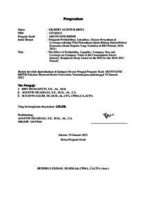 Austin, Gilbert (2023) Pengaruh Profitabilitas, Likuiditas, Ukuran Perusahaan & Leverage terhadap Nilai Perusahaan dalam Bidang Industri Sektor Konsumsi (Studi Empiris Yang Terdaftar di BEI Periode 2018-2021). Skripsi thesis, Universitas Tarumanagara.