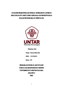 Marcella, Gracia (2022) ANALISIS REKONSILIASI FISKAL TERHADAP LAPORAN KEUANGAN PT. SME TAHUN 2021 DALAM MENENTUKAN PAJAK PENGHASILAN TERUTANG. Skripsi thesis, Universitas Tarumanagara.