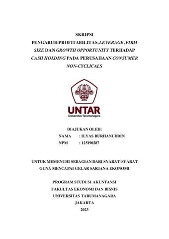 Buharnuddin, Ilyas (2023) PENGARUH PROFITABILITAS, LEVERAGE, FIRM SIZE DAN GROWTH OPPORTUNITY TERHADAP CASH HOLDING PADA PERUSAHAAN CONSUMER NON-CYCLICALS. Skripsi thesis, Universitas Tarumanagara.