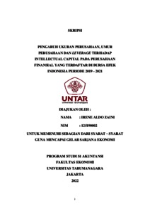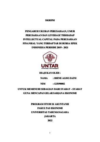 Aldo, Irene (2022) PENGARUH UKURAN PERUSAHAAN, UMUR PERUSAHAAN DAN LEVERAGE TERHADAP INTELLECTUAL CAPITAL PADA PERUSAHAAN FINANSIAL YANG TERDAFTAR DI BURSA EFEK INDONESIA PERIODE 2019 – 2021. Skripsi thesis, Universitas Tarumanagara.