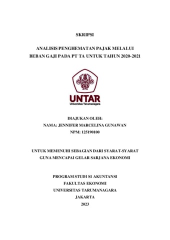 Marcelina, Jennifer (2023) ANALISIS PENGHEMATAN PAJAK MELALUI BEBAN GAJI PADA PT TA UNTUK TAHUN 2020-2021. Skripsi thesis, Universitas Tarumanagara.