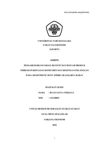 Widjaya, Ryan Satya (2016) PENGARUH BRAND IMAGE BENEFIT DAN INOVASI PRODUK TERHADAP KEPUASAN KONSUMEN DAN KESETIAAN PELANGGAN PADA SMARTPHONE SONY XPERIA DI JAKARTA BARAT. Skripsi thesis, UNIVERSITAS TARUMANAGARA.