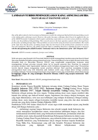 Adhari, Ade (2022) Landasan Yuridis Penenggelaman Kapal Asing Dalam Era Masyarakat Ekonomi ASEAN. SERINA IV Untar 2022.