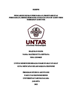 Sutta, Maitri (2022) PENGARUH UKURAN PERUSAHAAN, PROFITABILITAS PERUSAHAAN, RISIKO PERUSAHAAN DAN STATUS OF AUDIT FIRM TERHADAP AUDIT FEE. Skripsi thesis, Universitas Tarumanagara.