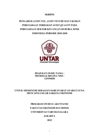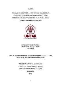 Regina, Michelle (2022) PENGARUH AUDIT FEE, AUDIT TENURE DAN UKURAN PERUSAHAN TERHADAP AUDIT QUALITY PADA PERUSAHAAN SEKTOR KEUANGAN DI BURSA EFEK INDONESIA PERIODE 2018 – 2020. Skripsi thesis, Universitas Tarumanagara.