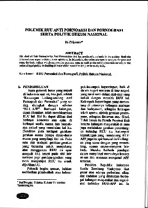 The draft of Anti Pornography And Pornoaction Act has produced a polemic in the society. Roth the pros and cons argue to defend their opinions. In this article, the writer attempts to analyze the pros and cons, the basic values which support the pros and cons as well as the policy (decision maker) or the national legal politic in drafting this act which would be felt just for every body.