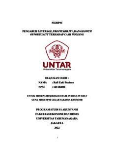 Zaki, Rafi (2022) PENGARUH LEVERAGE, PROFITABILITY, DAN GROWTH OPPORTUNITY TERHADAP CASH HOLDING. Skripsi thesis, Univesitas Tarumanagara.
