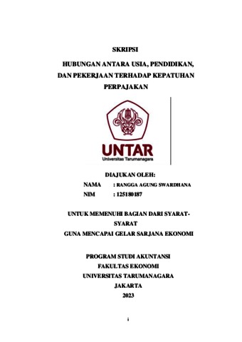 Agung, Rangga (2023) HUBUNGAN ANTARA USIA, PENDIDIKAN, DAN PEKERJAAN TERHADAP KEPATUHAN PERPAJAKAN. Skripsi thesis, Universitas Tarumanagara.