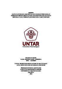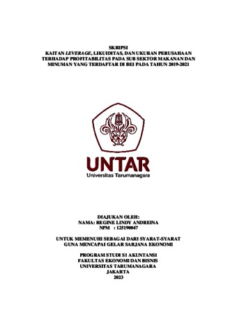 Lindy, Regine (2023) KAITAN, LEVERAGE, LIKUIDITAS, DAN UKURAN PERUSAHAAN TERHADAP PROFITABILITAS PADA SUB SEKTOR MAKANAN DAN MINUMAN YANG TERDAFTAR DI BEI PADA TAHUN 2019-2021. Skripsi thesis, Universitas Tarumanagara.