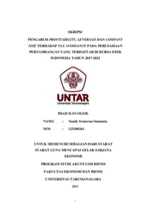 Irmawan, Sandy (2023) PENGARUH PROFITABILITY, LEVERAGE DAN COMPANY SIZE TERHADAP TAX AVOIDANCE PADA PERUSAHAAN PERTAMBANGAN YANG TERDAFTAR DI BURSA EFEK INDONESIA TAHUN 2017-2021. Skripsi thesis, Universitas Tarumanagara.