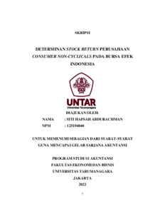 Hafsah, Siti (2022) DETERMINAN STOCK RETURN PERUSAHAAN CONSUMER NON-CYCLICALS PADA BURSA EFEK INDONESIA. Skripsi thesis, Universitas Tarumanagara.