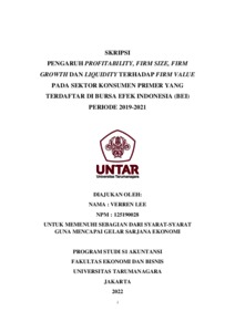 Lee, Varren (2022) PENGARUH PROFITABILITY, FIRM SIZE, FIRM GROWTH DAN LIQUIDITY TERHADAP FIRM VALUE PADA SEKTOR KONSUMEN PRIMER YANG TERDAFTAR DI BURSA EFEK INDONESIA (BEI) PERIODE 2019-2021. Skripsi thesis, Universitas Tarumanagara.