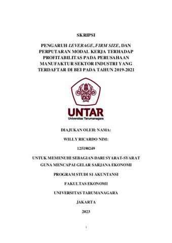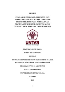 Ricardo, Willy (2023) PENGARUH LEVERAGE, FIRM SIZE, DAN PERPUTARAN MODAL KERJA TERHADAP PROFITABILITAS PADA PERUSAHAAN MANUFAKTUR SEKTOR INDUSTRI YANG TERDAFTAR DI BEI PADA TAHUN 2019-2021. Skripsi thesis, Universitas Tarumanagara.