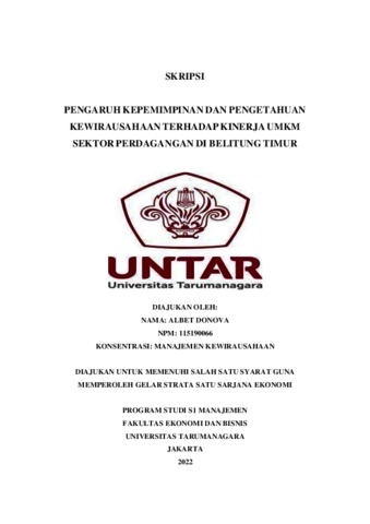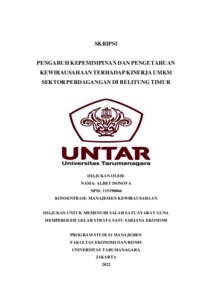 Donova, Albet (2022) PENGARUH KEPEMIMPINAN DAN PENGETAHUAN KEWIRAUSAHAAN TERHADAP KINERJA UMKM SEKTOR PERDAGANGAN DI BELITUNG TIMUR. Skripsi thesis, Universitas Tarumanagara.
