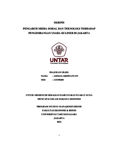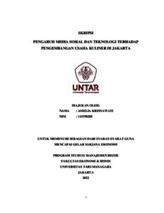 Krisnawati, Amelia (2022) PENGARUH MEDIA SOSIAL DAN TEKNOLOGI TERHADAP PENGEMBANGAN USAHA KULINER DI JAKARTA. Skripsi thesis, Universitas Tarumanagara.