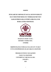 Moses, Benedict (2023) PENGARUH CORPORATE SOCIAL RESPONSIBILITY DAN FIRM PERFORMANCE TERHADAP RETURN SAHAM PERUSAHAAN PERTAMBANGAN DI BURSA EFEK INDONESIA. Skripsi thesis, Universitas Tarumanagara.