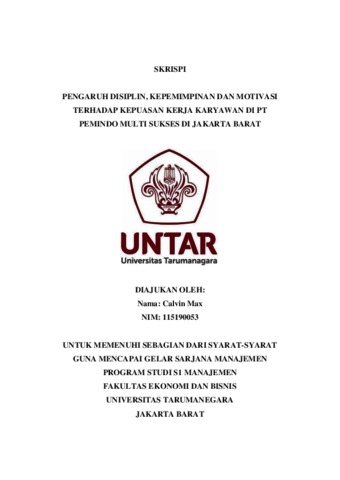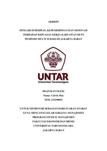 Max, Calvin (2022) PENGARUH DISIPLIN, KEPEMIMPINAN DAN MOTIVASI TERHADAP KEPUASAN KERJA KARYAWAN DI PT PEMINDO MULTI SUKSES DI JAKARTA BARAT. Skripsi thesis, Universitas Tarumanagara.