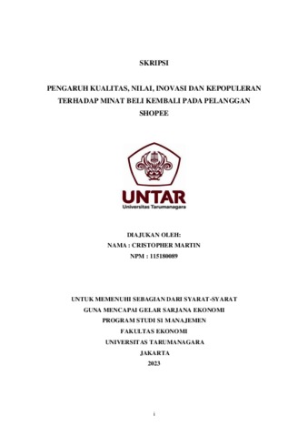 Martin, Christopher (2023) PENGARUH KUALITAS, NILAI, INOVASI DAN KEPOPULERAN TERHADAP MINAT BELI KEMBALI PADA PELANGGAN SHOPEE. Skripsi thesis, Universitas Tarumanagara.