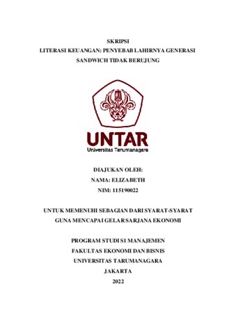 Elizabeth, Elizabeth (2022) LITERASI KEUANGAN: PENYEBAB LAHIRNYA GENERASI SANDWICH TIDAK BERUJUNG. Skripsi thesis, Universitas Tarumanagara.