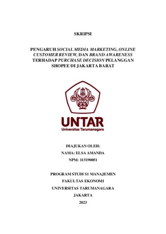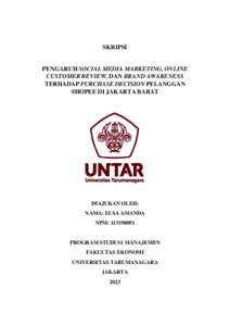 Amanda, Elsa (2023) PENGARUH SOCIAL MEDIA MARKETING, ONLINE CUSTOMER REVIEW, DAN BRAND AWARENESS TERHADAP PURCHASE DECISION PELANGGAN SHOPEE DI JAKARTA BARAT. Skripsi thesis, Universitas Tarumanagara.