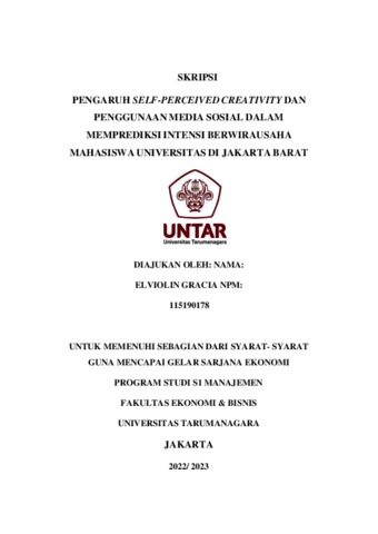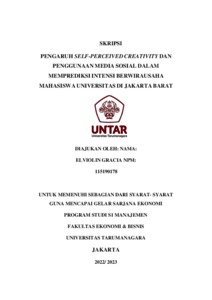 Gracia, Elviolin (2022) PENGARUH SELF-PERCEIVED CREATIVITY DAN PENGGUNAAN MEDIA SOSIAL DALAM MEMPREDIKSI INTENSI BERWIRAUSAHA MAHASISWA UNIVERSITAS DI JAKARTA BARAT. Skripsi thesis, Universitas Tarumanagara.