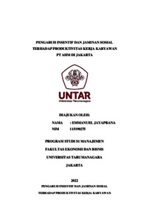 Jayaprana, Emmanuel (2022) PENGARUH INSENTIF DAN JAMINAN SOSIAL TERHADAP PRODUKTIVITAS KERJA KARYAWAN PT AHM DI JAKARTA. Skripsi thesis, Universitas Tarumanagara.