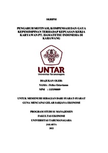 Oktavianus, Felixs (2022) PENGARUH MOTIVASI, KOMPENSASI DAN GAYA KEPEMIMPINAN TERHADAP KEPUASAN KERJA KARYAWAN PT. HAMATETSU INDONESIA DI KARAWANG. Skripsi thesis, Universitas Tarumanagara.
