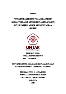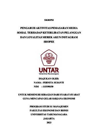 Susanti, Fernita (2023) PENGARUH AKTIVITAS PEMASARAN MEDIA SOSIAL TERHADAP KETERLIBATAN PELANGGAN DAN LOYALITAS MEREK AKUN INSTAGRAM SHOPEE. Skripsi thesis, Universitas Tarumanagara.