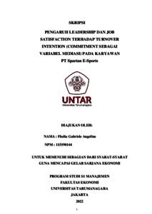 Gabriele, Fhelia (2022) PENGARUH LEADERSHIP DAN JOB SATISFACTION TERHADAP TURNOVER INTENTION (COMMITMENT SEBAGAI VARIABEL MEDIASI) PADA KARYAWAN PT Spartan E-Sports. Skripsi thesis, Universitas Tarumanagara.