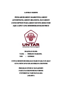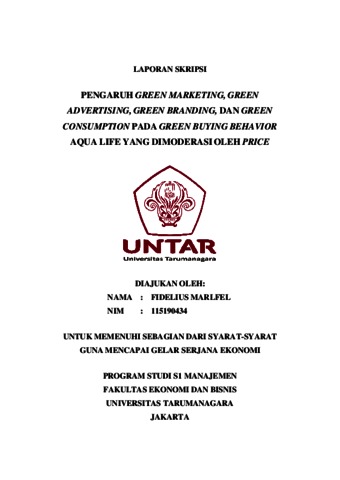 Marlfel, Fidelius (2022) PENGARUH GREEN MARKETING, GREEN ADVERTISING, GREEN BRANDING, DAN GREEN CONSUMPTION PADA GREEN BUYING BEHAVIOR AQUA LIFE YANG DIMODERASI OLEH PRICE. Skripsi thesis, Universitas Tarumanagara.