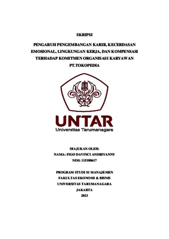 Davinci, Figo (2023) PENGARUH PENGEMBANGAN KARIR, KECERDASAN EMOSIONAL, LINGKUNGAN KERJA, DAN KOMPENSASI TERHADAP KOMITMEN ORGANISASI KARYAWAN PT.TOKOPEDIA. Skripsi thesis, Universitas Tarumanagara.