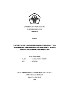 Verena, Camelia Dea (2014) FAKTOR-FAKTOR YANG MEMPENGARUHI STORE LOYALTY DAN PENGARUHNYA TERHADAP SHOPPING MALL LOYALTY DENGAN DISTANCE SEBAGAI VARIABEL MODERATOR. Skripsi thesis, UNIVERSITAS TARUMANAGARA.
