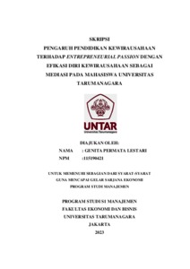Permata, Genita (2023) PENGARUH PENDIDIKAN KEWIRAUSAHAAN TERHADAP ENTREPRENEURIAL PASSION DENGAN EFIKASI DIRI KEWIRAUSAHAAN SEBAGAI MEDIASI PADA MAHASISWA UNIVERSITAS TARUMANAGARA. Skripsi thesis, Universitas Tarumanagara.